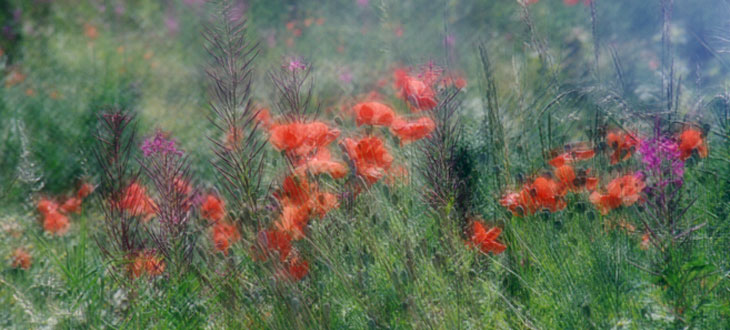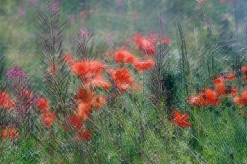 A great technique to try with colourful flowers and foliage, this is where several pictures are recorded on the same frame, creating a montage of overlapping images. A popular technique is to record two exposures at the same time, one sharply exposed and the other slightly out of focus, creating a dreamy soft focus effect. Another technique is to photograph the same subject 3, 4 or 5 times, creating a montage effect. When taking multiple exposures, it's important to underexpose each image as the frame is being exposed to light for a longer period than it would normally. The amount of underexposure depends on haw many images you plan to take. The general rule for exposure is as follows: