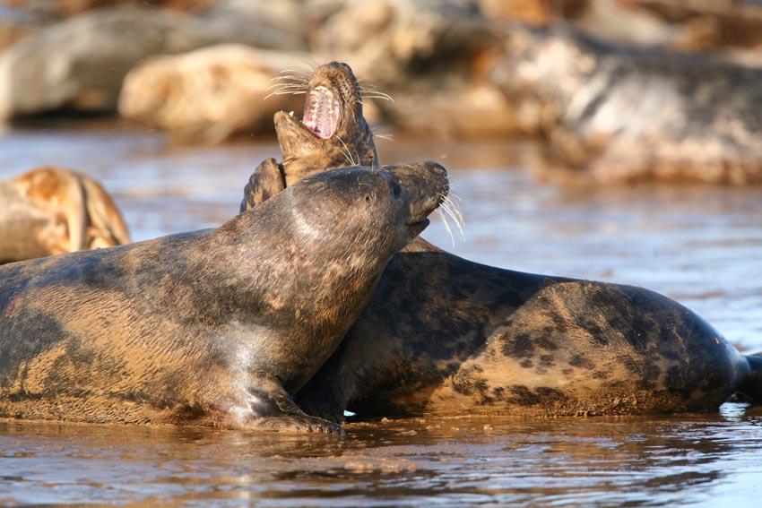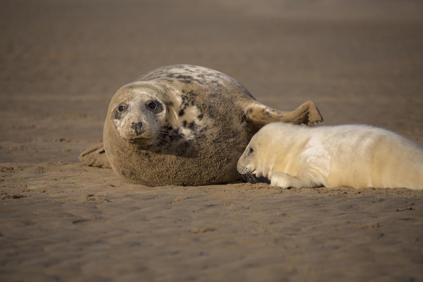 Visitor number at Donna Nook have gown hugely in recent years. What used to be a handful of professional photographers taking pictures there have grown into hundreds - every day. Many photographers lack the fieldcraft to approach the seals without disturbing them. If approached too closely or incorrectly, many mothers will become stressed rallying close to their pups, snarling and even attacking in defence. Less experienced mothers will turn tails and flee, leaving their pups to negotiate the gauntlet of photographers and dangerous bull seals alone. Grey seal mothers rely on their blubber reserves and do not leave their pups throughout the seventeen or so days from birth to weaning unless they are disturbed. Consiquently, grey seals only have crude pup recognition mechanisms and often fail to relocate and identify their pups, especially their scent is blended with those of neaby photographers. If mothers fail to find their pups, or cannot get back to pups surrounded by photographers, the pups will certainly become malnourished and die. Furthermore, stressed mothers have less time and energy to devote to suckling their pup. As pup fat reserves correlate with survival, the offspring of stressed mothers are significantly less likely to survive out at sea.